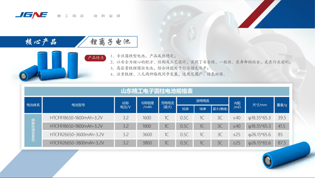 山東精工電子科技有限公司(品牌:精工 JGNE)成立于2008年,是中國航天科工集團(tuán)旗下的一家高新技術(shù)企業(yè)。山東精工JGNE的主要產(chǎn)品:超級電容、鋰離子電池等,致力于新能源產(chǎn)品的研發(fā)應(yīng)用并使其產(chǎn)業(yè)化。主要客戶包括中船重工、美國通用電器GE、英國PK、德國BMZ等國內(nèi)外知名企業(yè)。